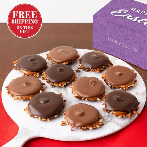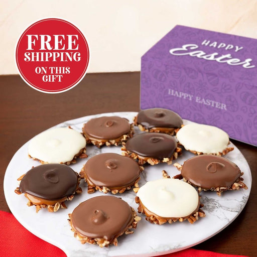 Our chocolate-y best for Easter! Our #1 Chocolate treat starts with crunchy Georgia Pecan pieces and is topped with homemade Caramel and luscious C...