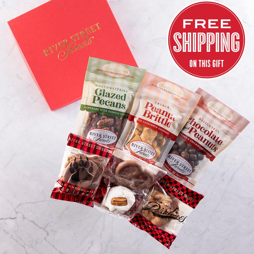 At River Street Sweets®, we believe every special moment is sweeter when it’s shared—especially with free shipping. Our Free Shipping Gifts collection features best-selling Southern confections like creamy Pralines, rich Bear Claws, crunchy glazed pecans, and decadent chocolate treats, all handcrafted in small batches using our family recipes.
