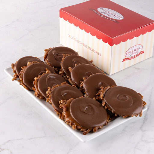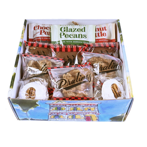 Celebrate a milestone birthday, anniversary, or graduation with a unique gift. Select from Gourmet Gift Boxes that include signature southern favorites like pralines, divinity, peanut brittle. The Savannah Sampler Gift Box not only includes these signature southern favorites, but it also features glazed pecans, milk chocolate bear claws, and comes in a stunning box with a portrait of the River Front. It's a gift they won't ever forget.