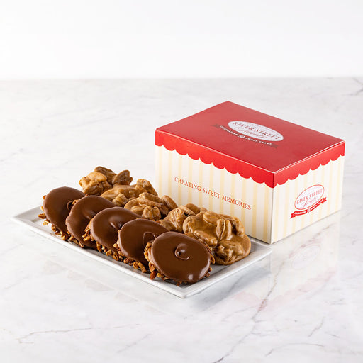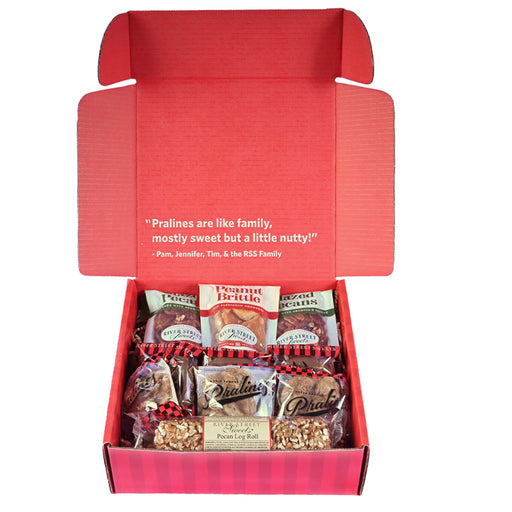 Candy Gift Boxes from River Street Sweets make gift-giving easy, any time of the year. Gourmet Gift Boxes filled with our world famous pralines, delectable chocolate bear claws, and traditional favorites like southern divinity are perfect for any gift giving occasion. Our Candy Gift Boxes are the best way to wish someone special a Happy Birthday, to say thank you for a job well done, or to celebrate a holiday. Any reason is a good reason to share these unforgettable, gourmet candies.