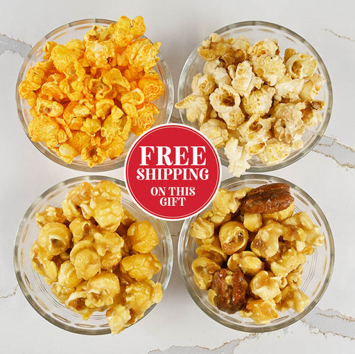 Four incredible flavors in one irresistible box! Our Popcorn Palooza delivers the perfect variety pack with Caramel Corn, Kettle Corn, Cheddar Corn...