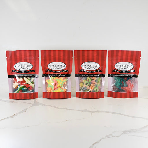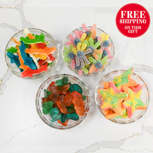 Dive into irresistible ocean flavors! This treasure box delivers four amazing 6oz bags: tangy Gummy Sour Octopus, sweet Gummy Mermaid Tails, tropic...