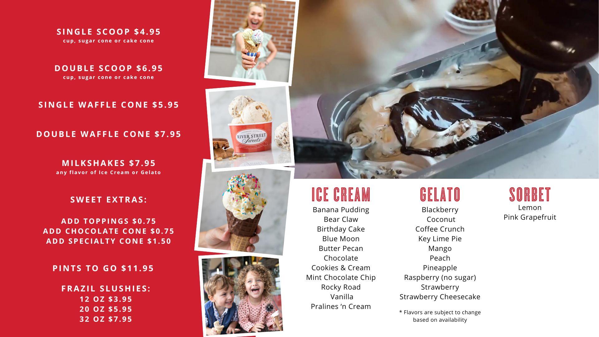 Broughton Street Savannah's Ice Cream Menu