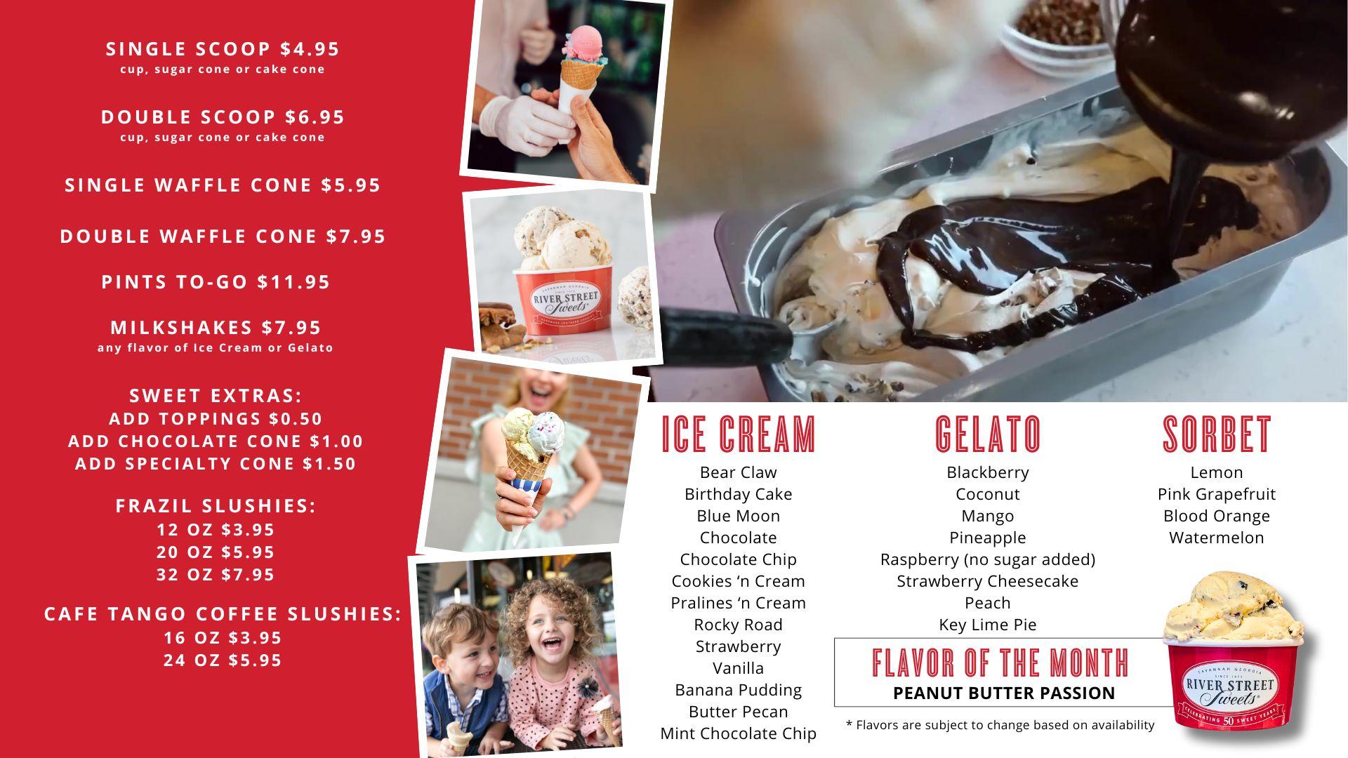 River Street Flagship Store Ice Cream Menu
