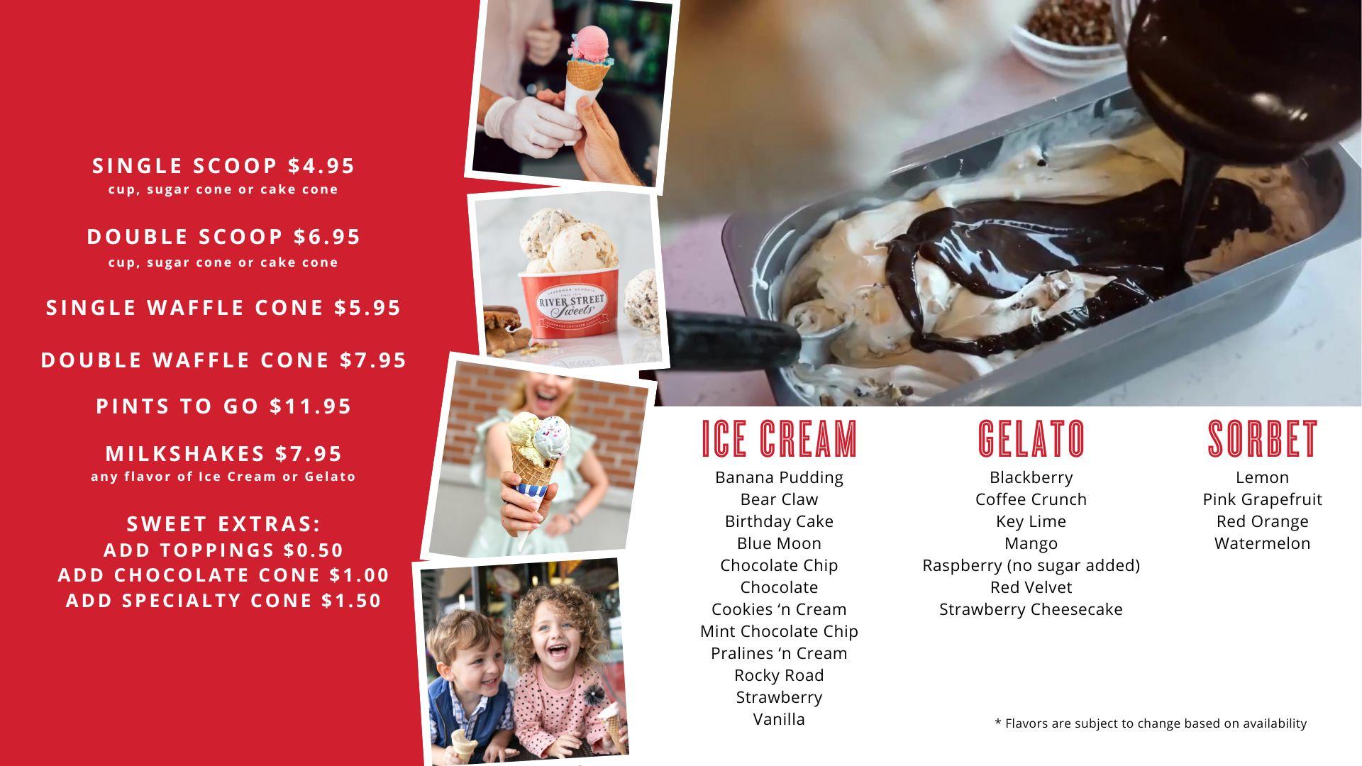 Habersham Street Savannah's Ice Cream Menu