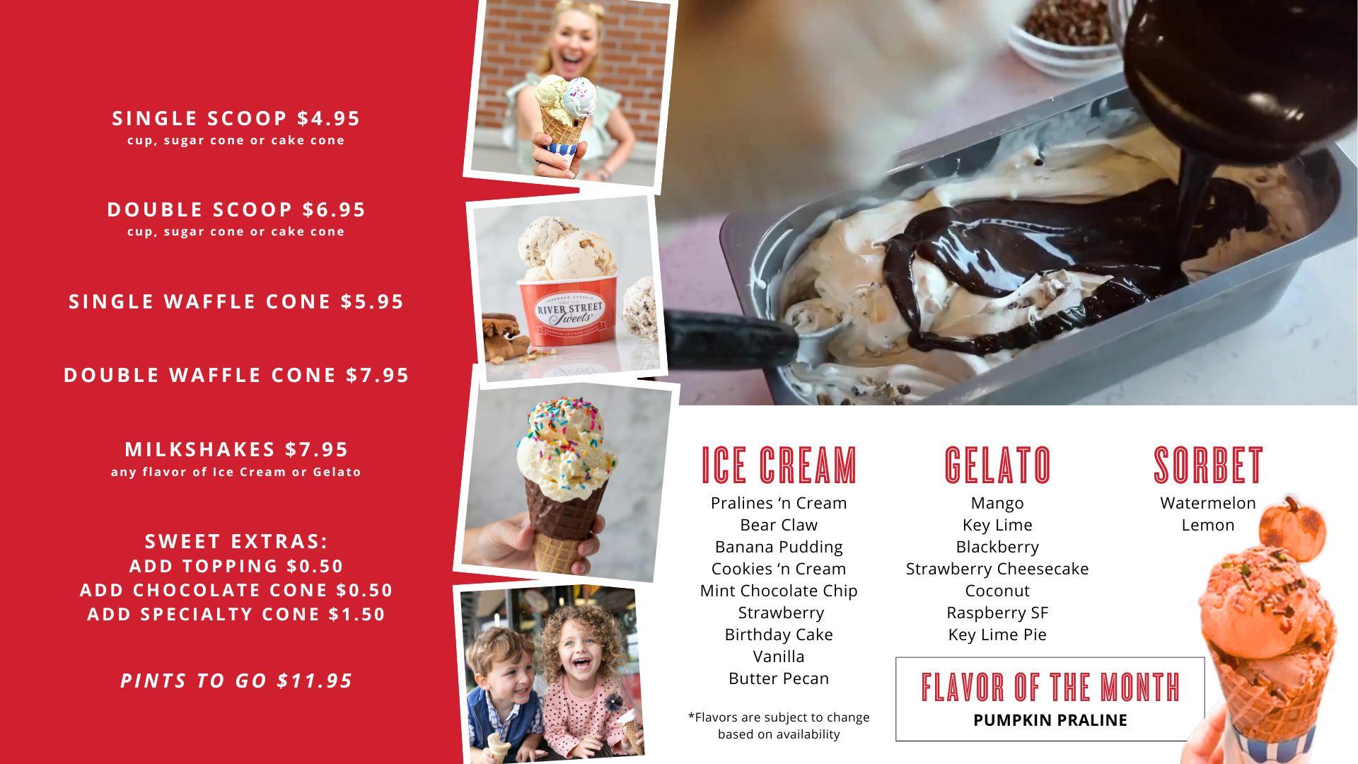 Market Street Charleston's Ice Cream Menu